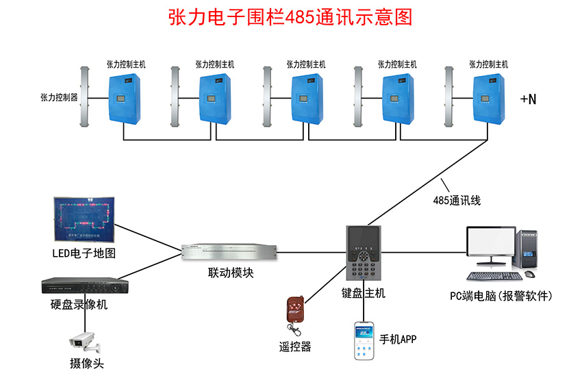 張力電子圍欄報警系統示意圖——網絡通訊+LED電子屏+語音