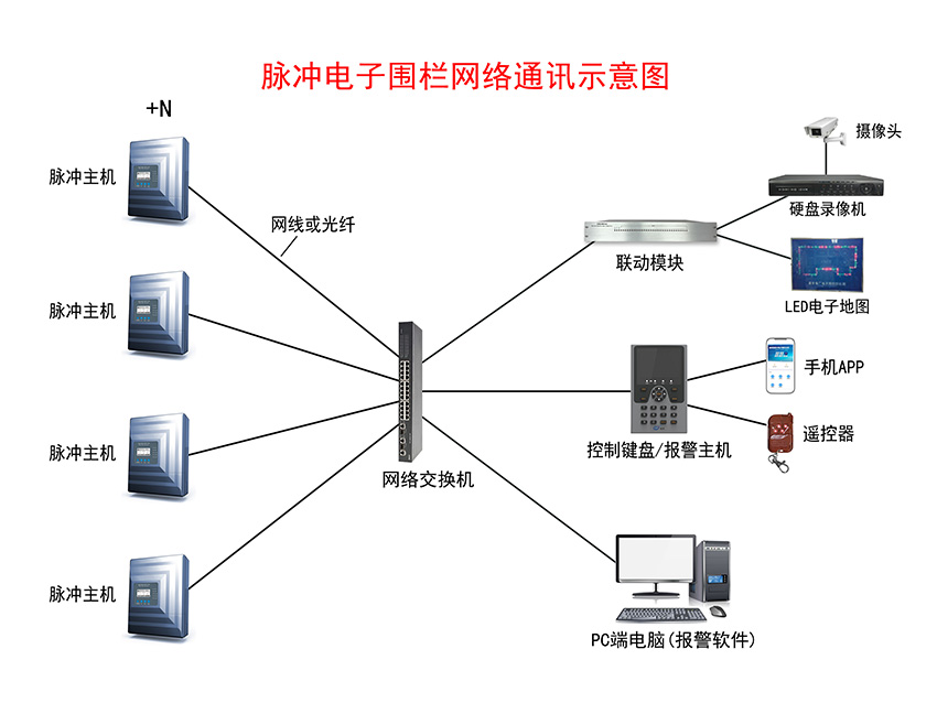 脈沖電子圍欄報警系統(tǒng)示意圖——網絡通訊