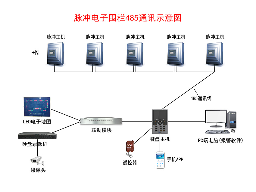 脈沖電子圍欄報警系統(tǒng)示意圖——485通訊